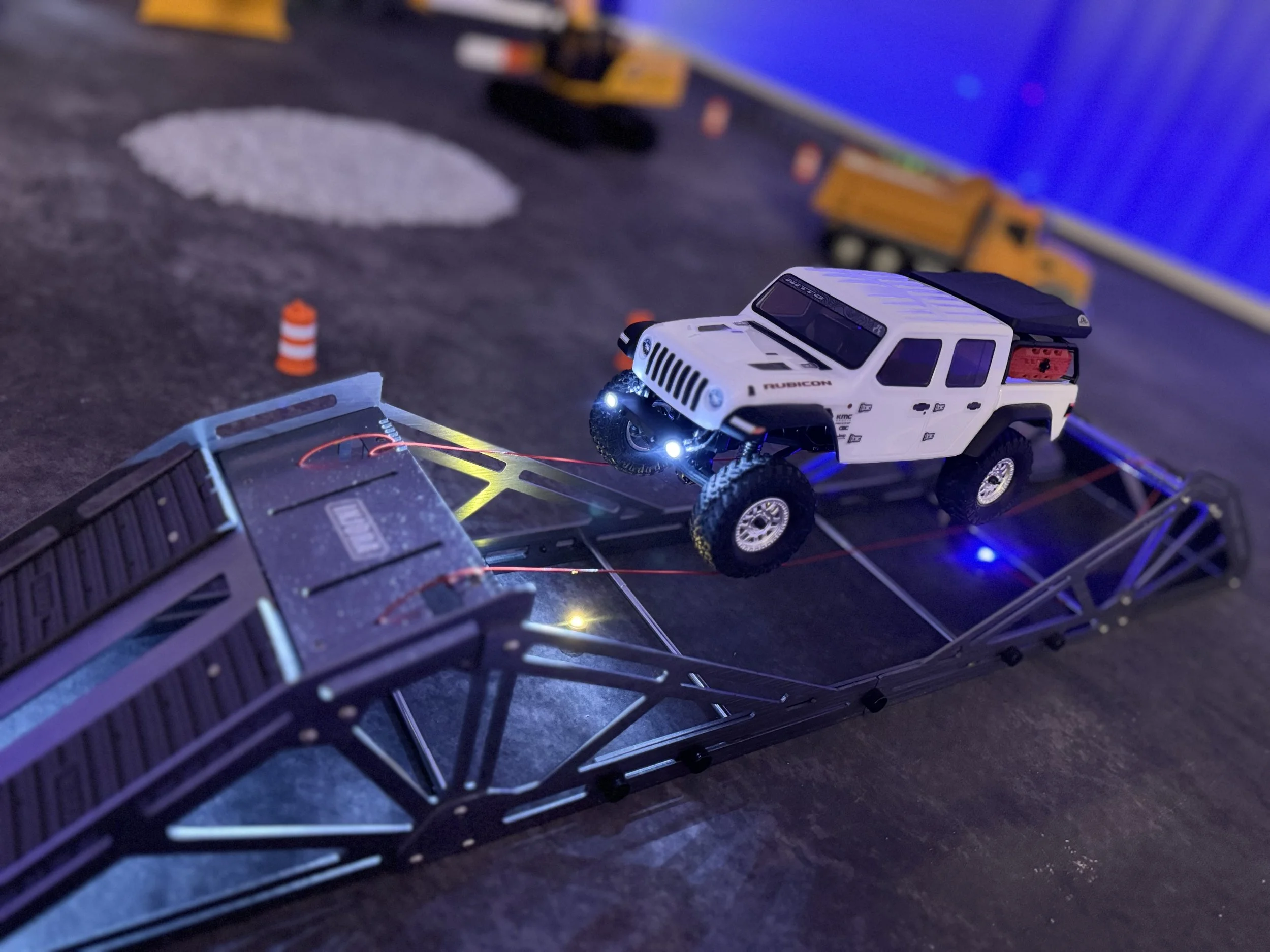 RC Legends features an 8×8 LED-lit arena with RC excavators, dump trucks, crawlers, obstacles, and construction-style challenges that engage guests of all ages.